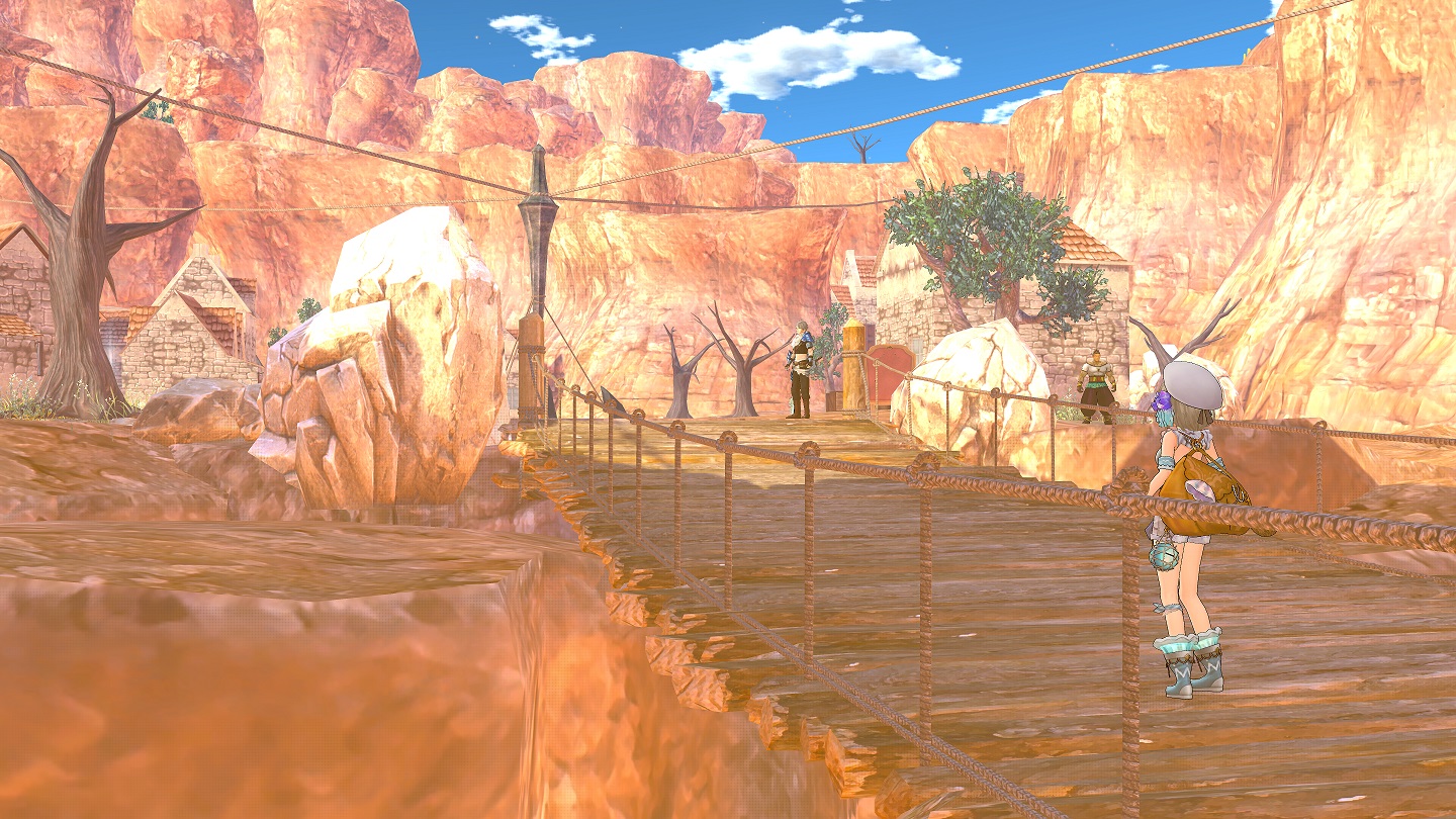 While exploring their surroundings, players will encounter events which they must overcome to access new locations. These challenges will have multiple solutions that can permanently alter the environment. Take a broken bridge, for example – fixing the bridge will allow for easy access to the other side, but taking an alternate route could lead to the discovery of useful synthesis materials. Some of these Landmarks will be quite useful for Firis’s travels and she will need to return to them often! Once visited, Landmarks can be used as Fast Travel locations, allowing Firis to easily travel back and forth across the world.