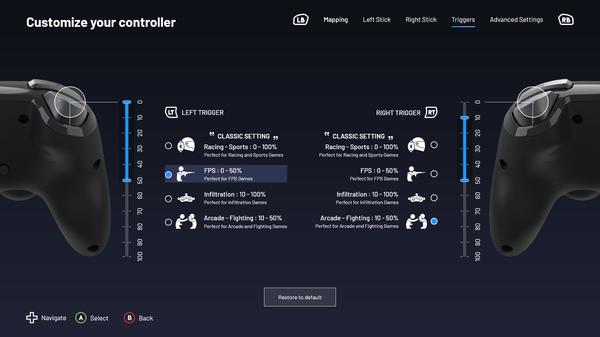 As seen above, the Pro Compact controller features the traditional settings of the Xbox Wireless Controller when used in Standard Mode, while gamers can adjust the controller with their own settings in Advanced Mode.