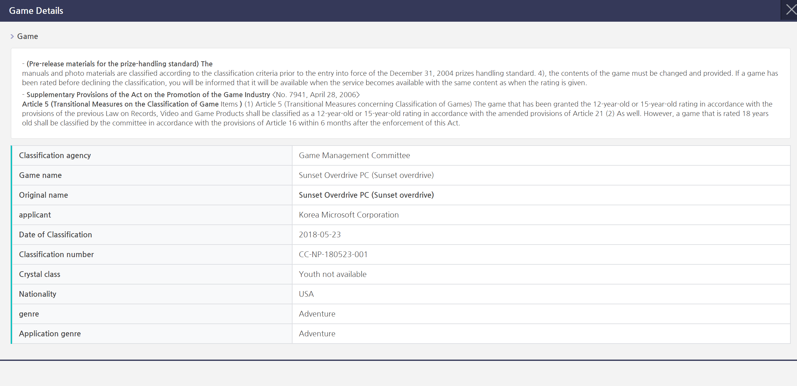 The applicant for the game rating was Korea Microsoft Corporation and was rated for 12-15-year-olds in South Korea today, May 23, 2018.